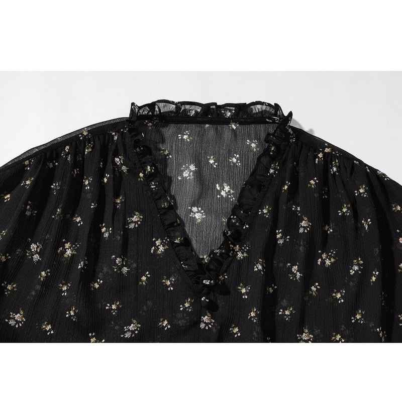 さり気ないフリルがフェミニンで、普段使いはもちろんちょっとしたお呼ばれにも活躍する一枚です。