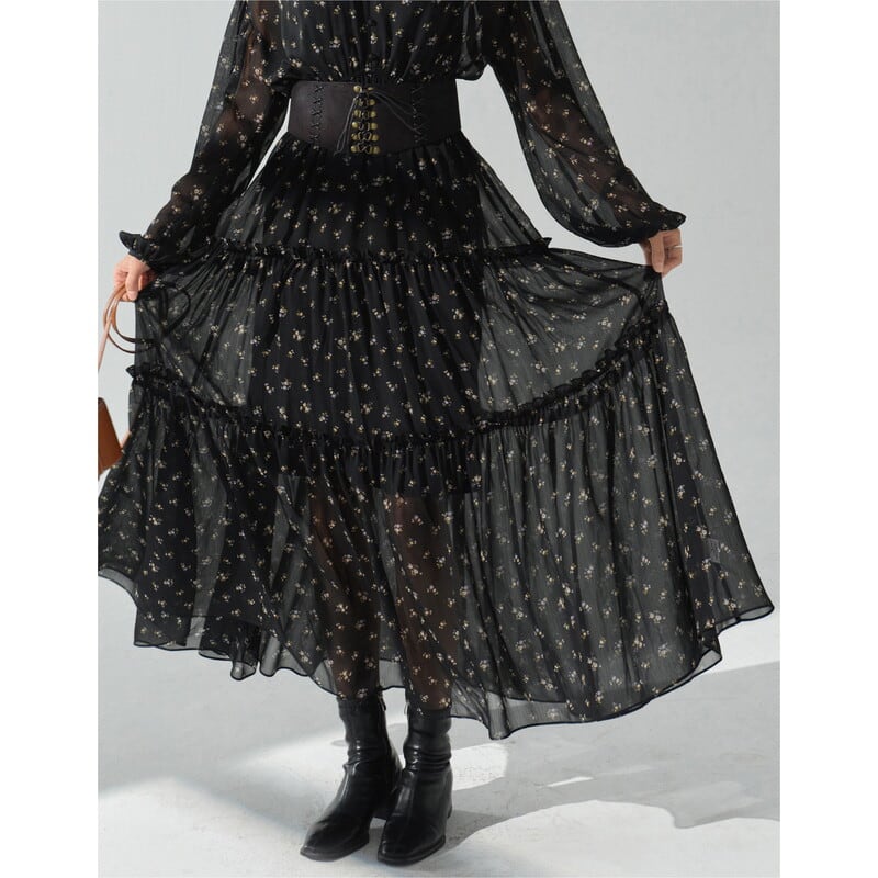 ティアードスカートデザインが、動きのあるシルエットを演出。