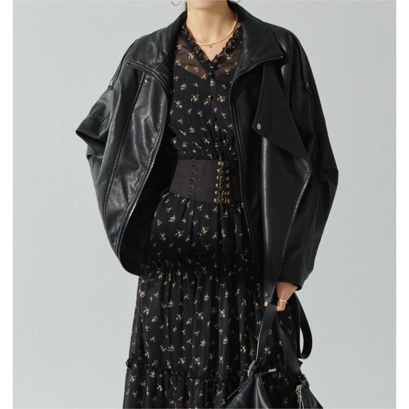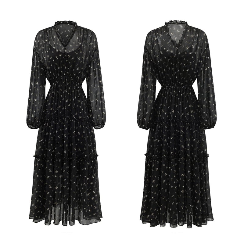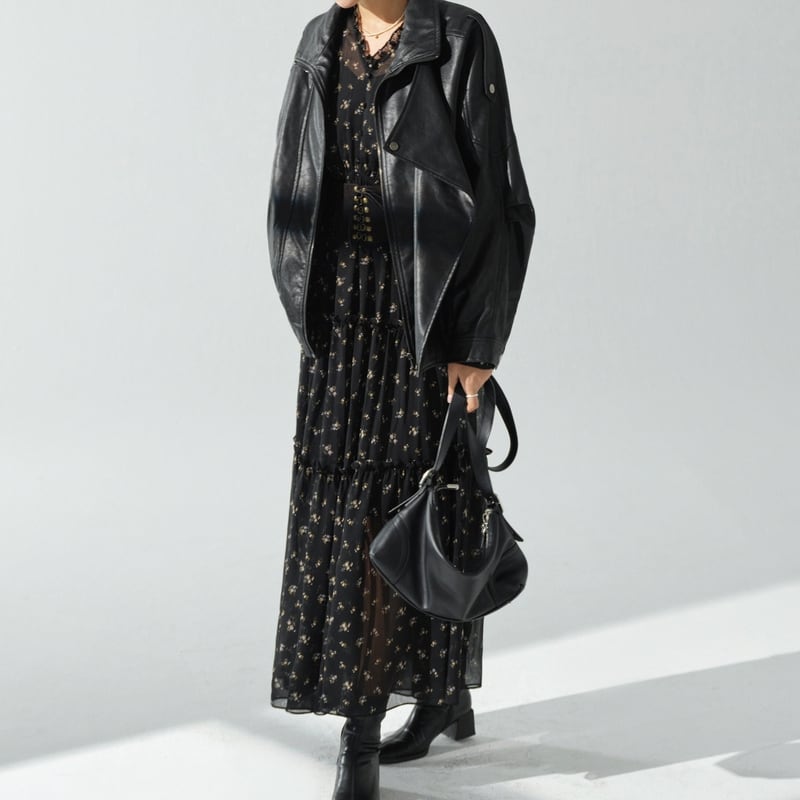 繊細なフラワープリントがフェミニンな印象のロングワンピースです。