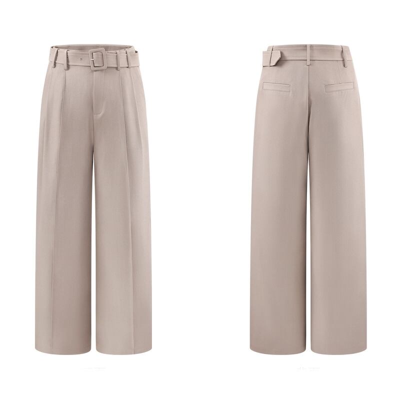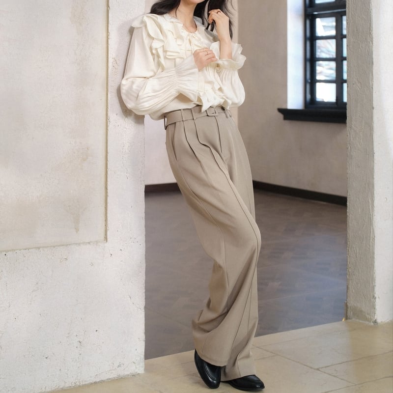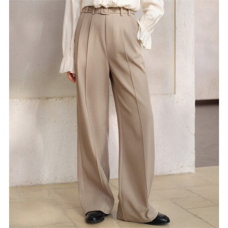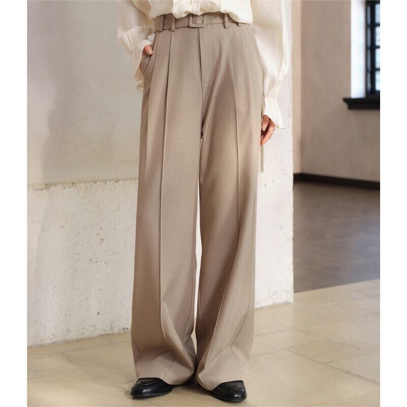 ベルトがアクセントになった、フルレングス丈のセンタープレスパンツです。