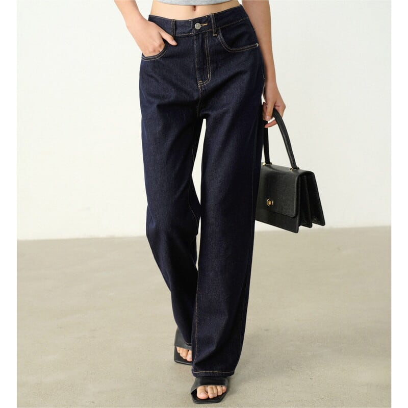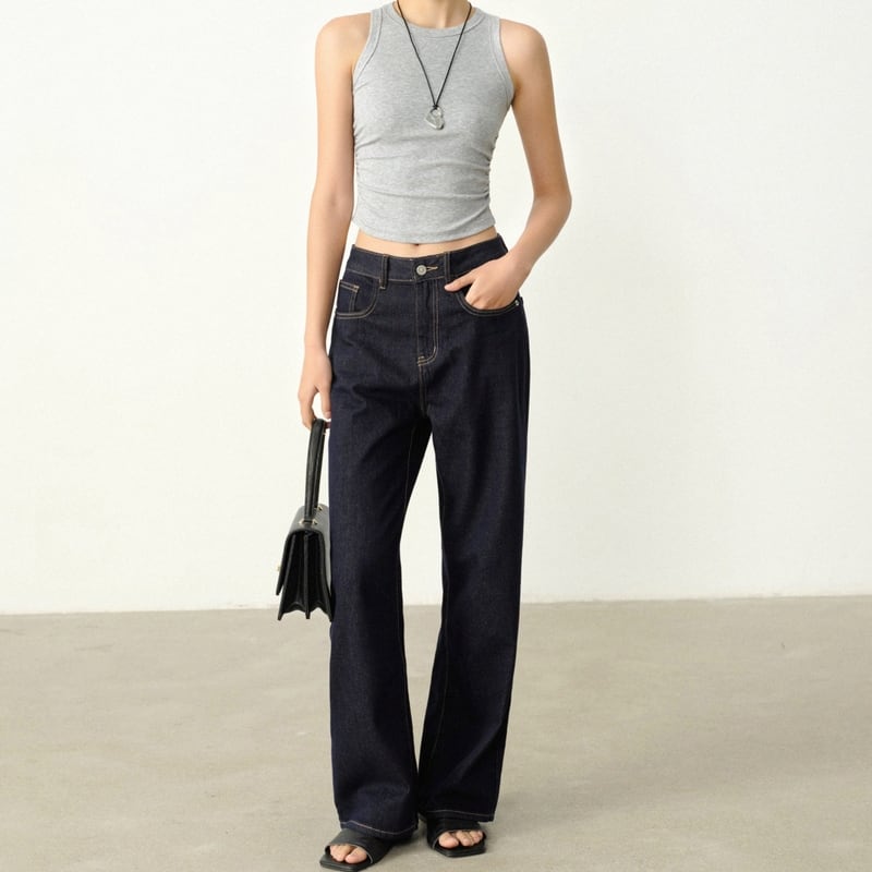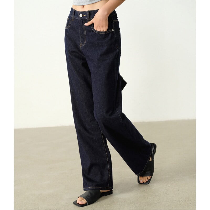 脚長効果が期待できる、ストレートシルエットのデニムパンツです。