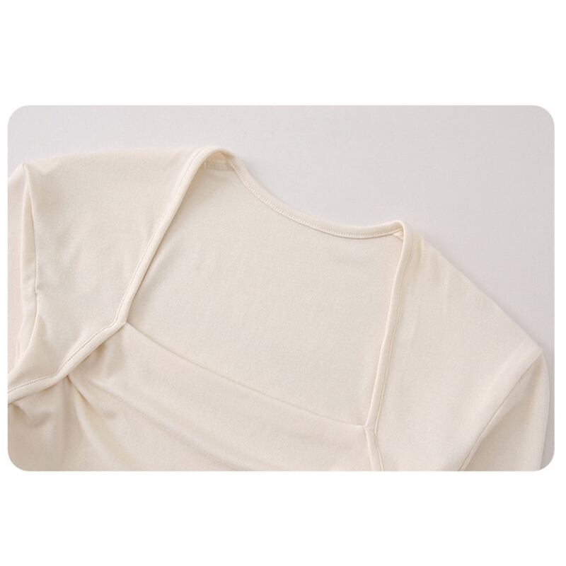 スクエアネックが個性的なデザインで、普段のコーディネートにアクセントをプラス。