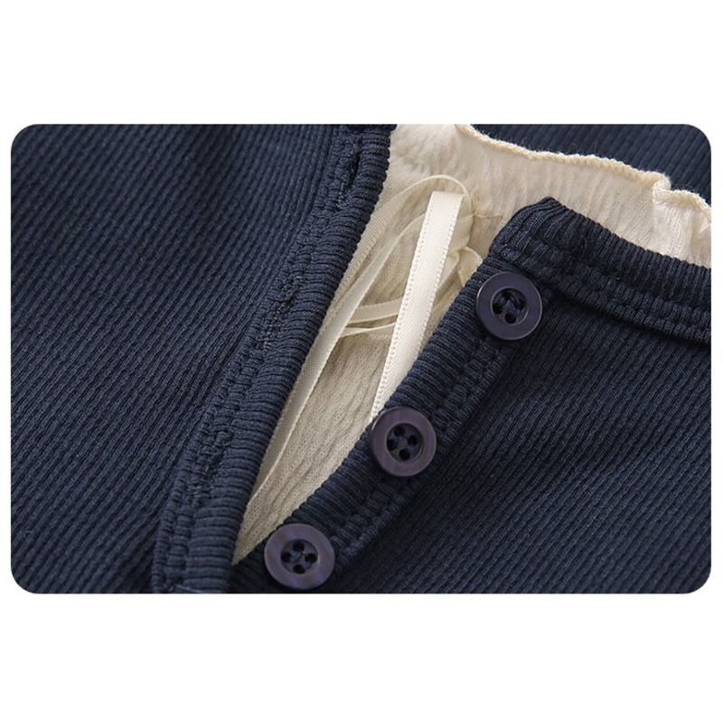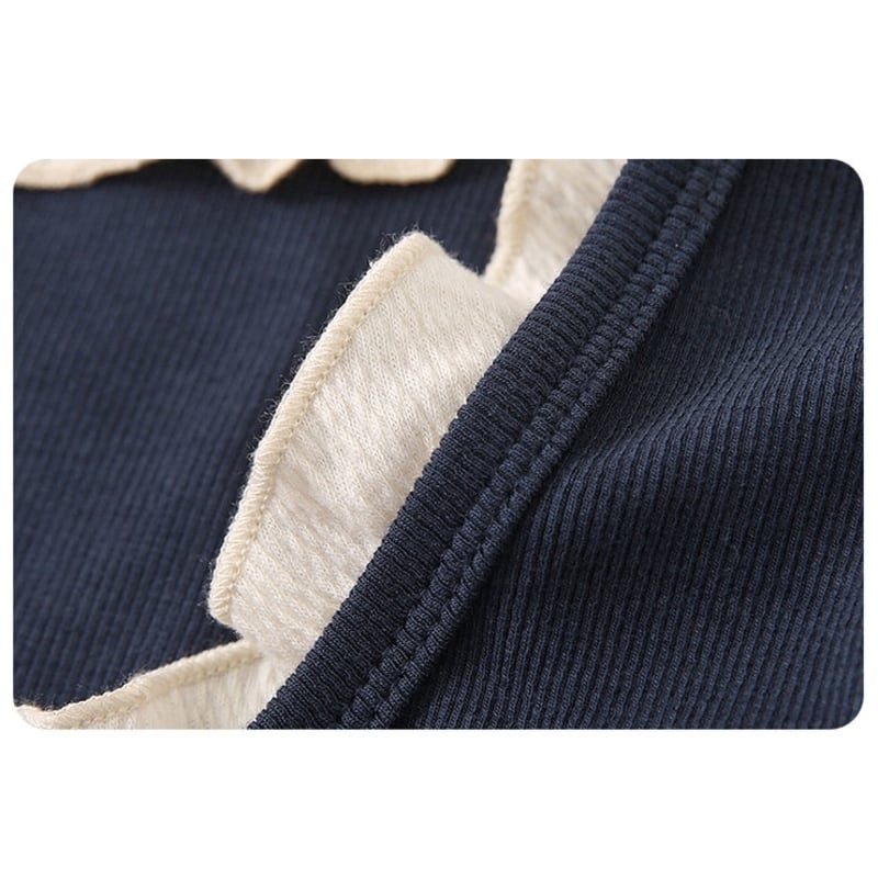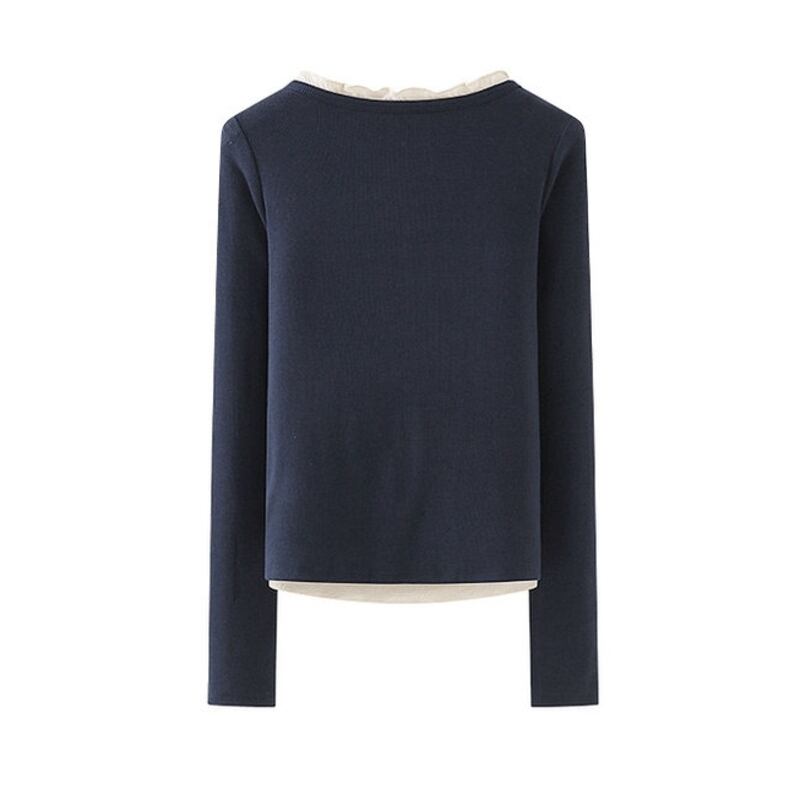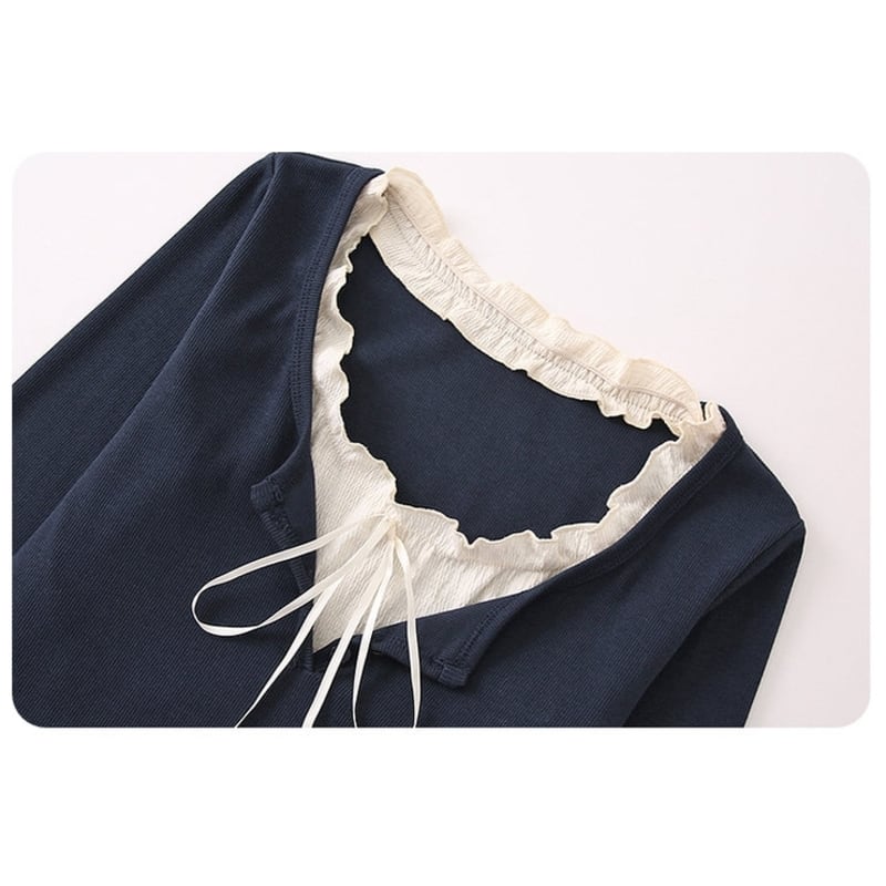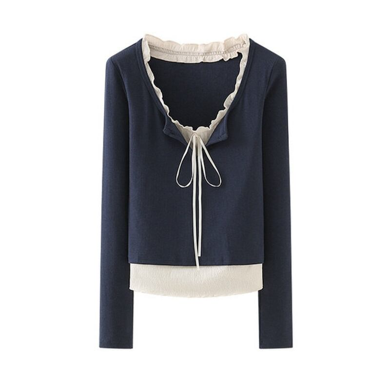 華奢なリボンがアクセントのレイヤード風のバイカラーカットソーです。