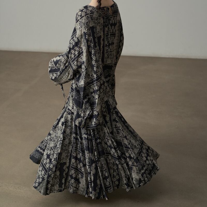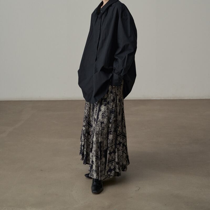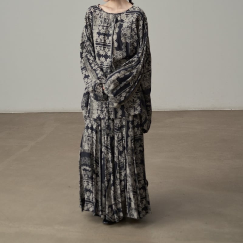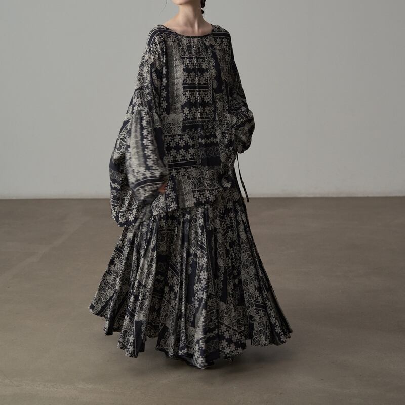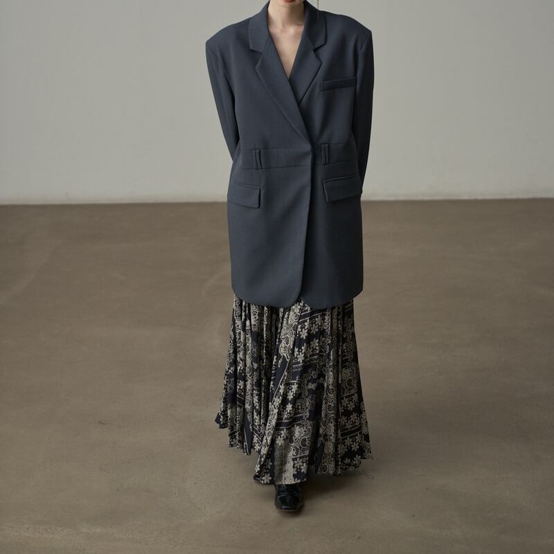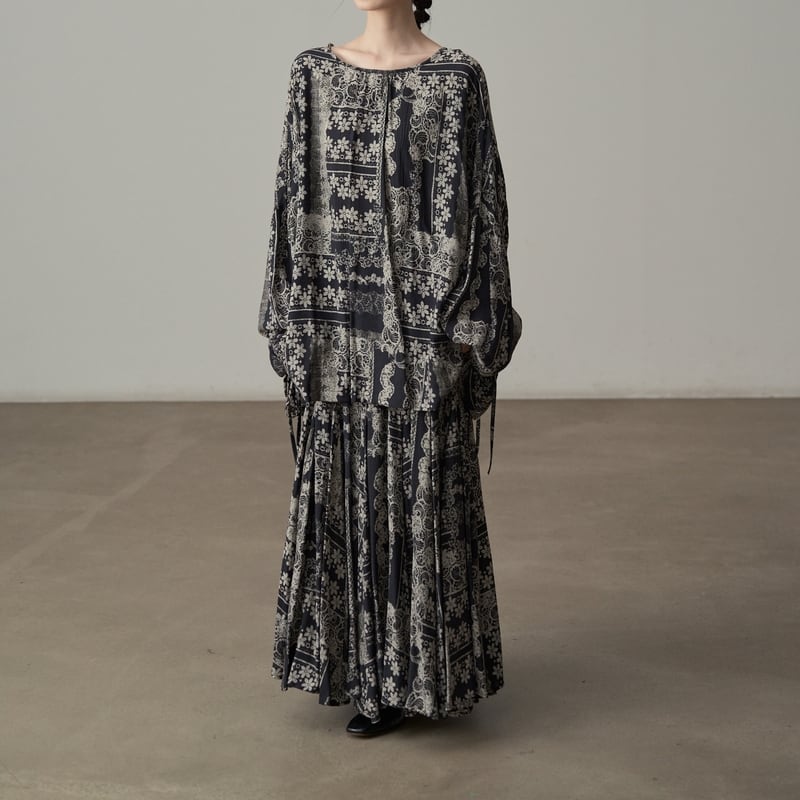 プリーツ加工が施されており、動きに合わせて優雅に揺れ動くシルエットが魅力的。