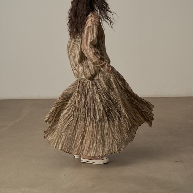 ドロップショルダーが、より抜け感のある印象を演出。