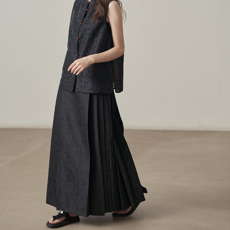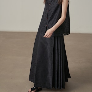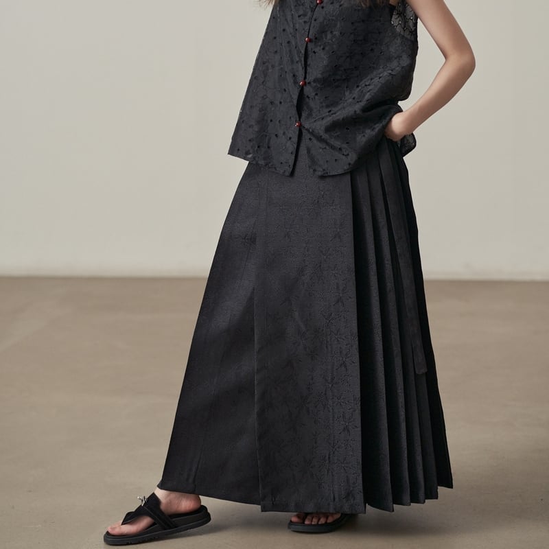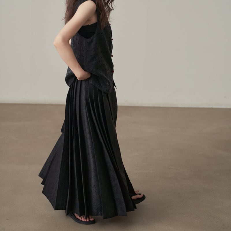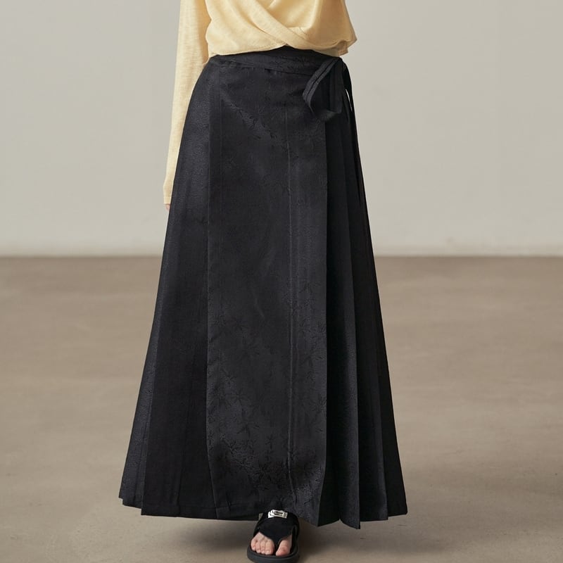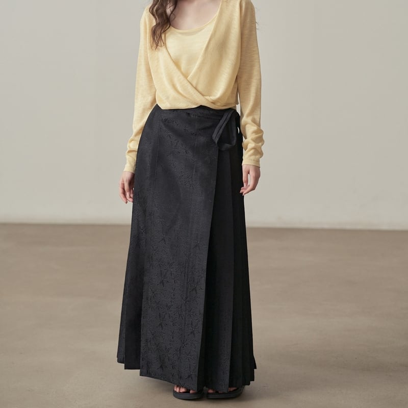 ウエストリボン付きでラップ風デザインが特徴的なサイドプリーツスカートです。