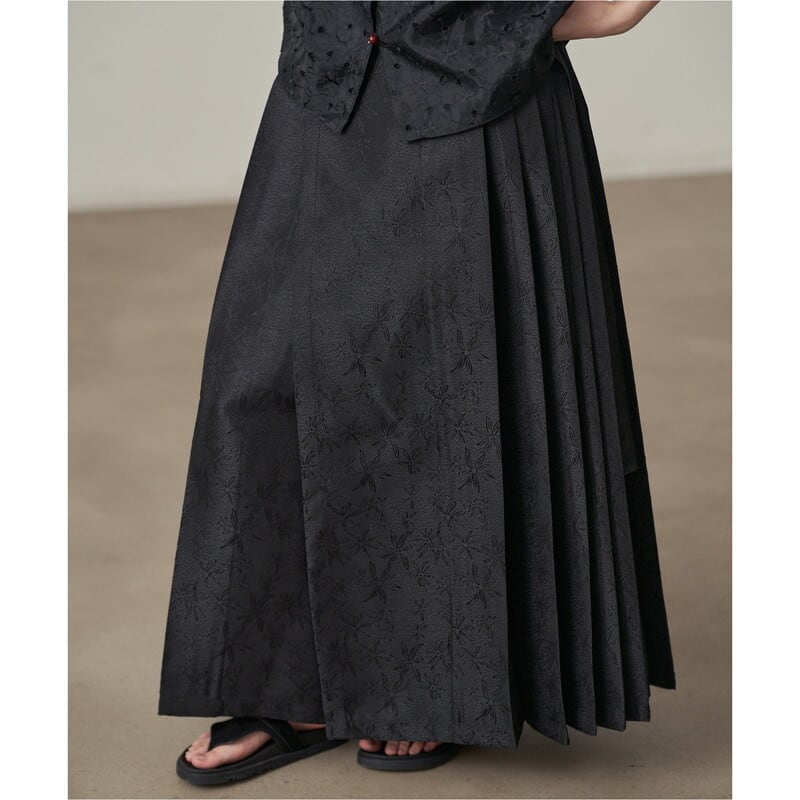 シックなブラックに映えるさり気ないフラワーパターンが、女性らしさを引き立てます。