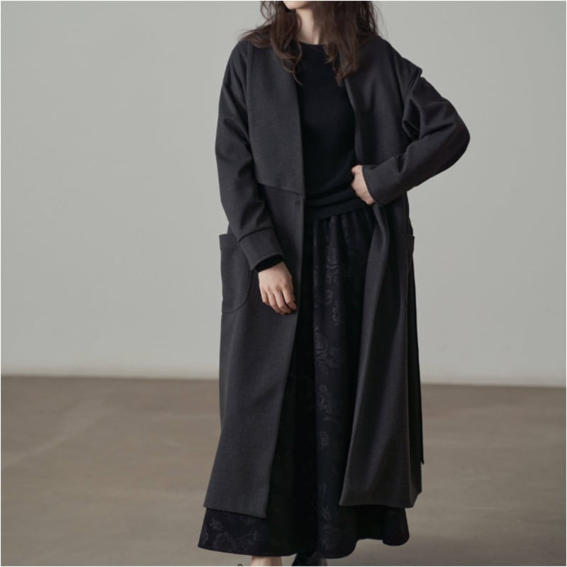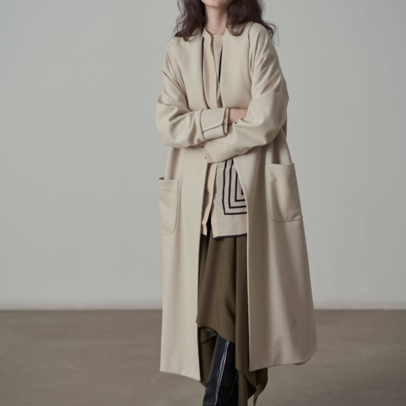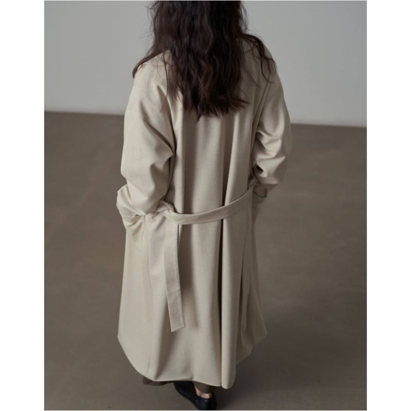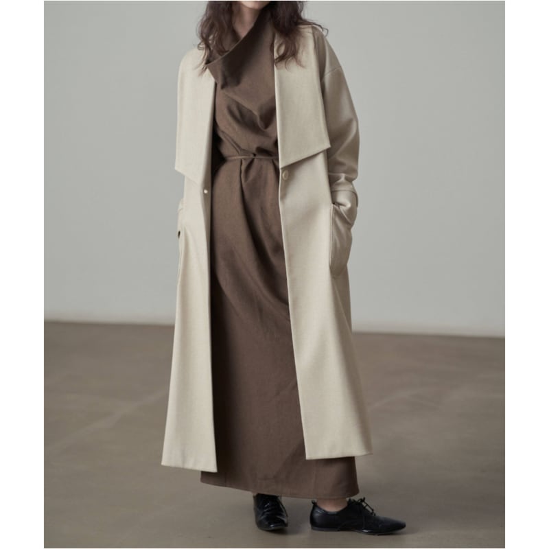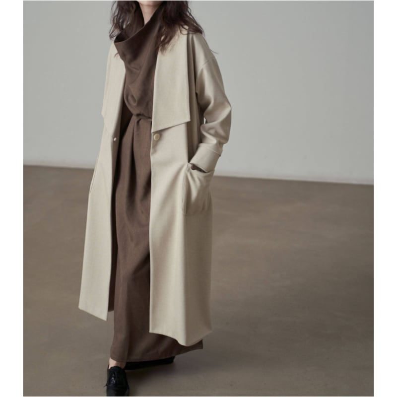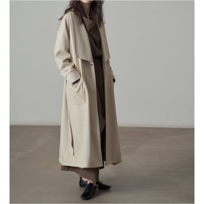 深めの合わせがポイントのトレンチ風デザインが爽やかなロングコートです。