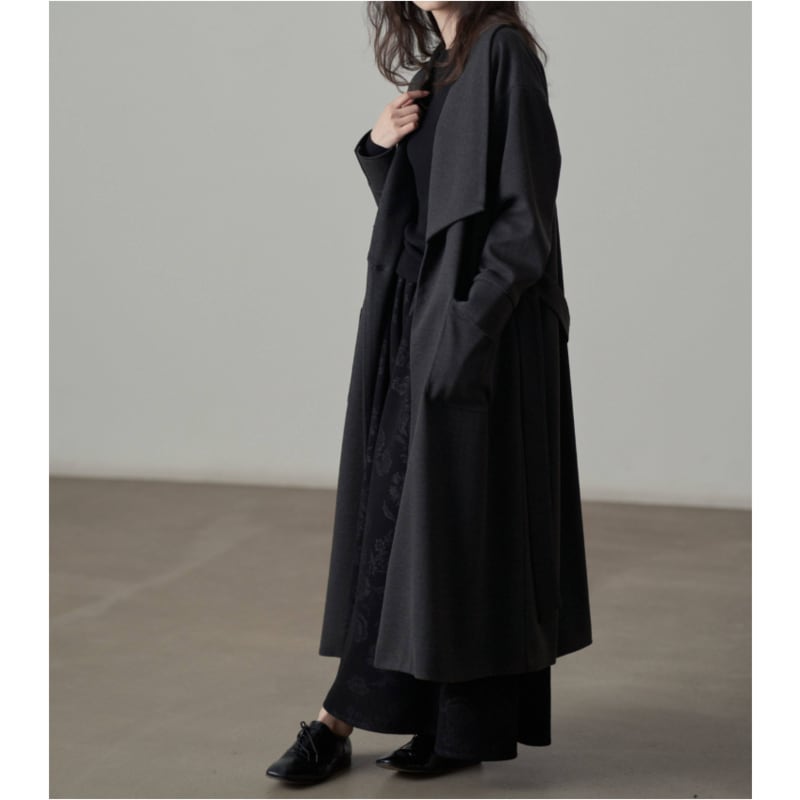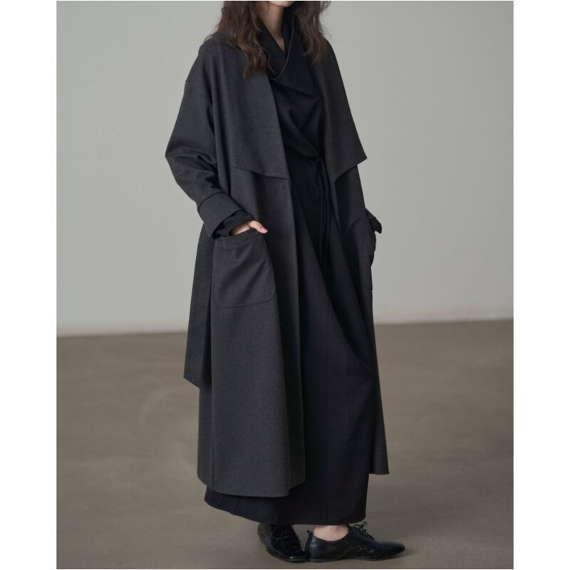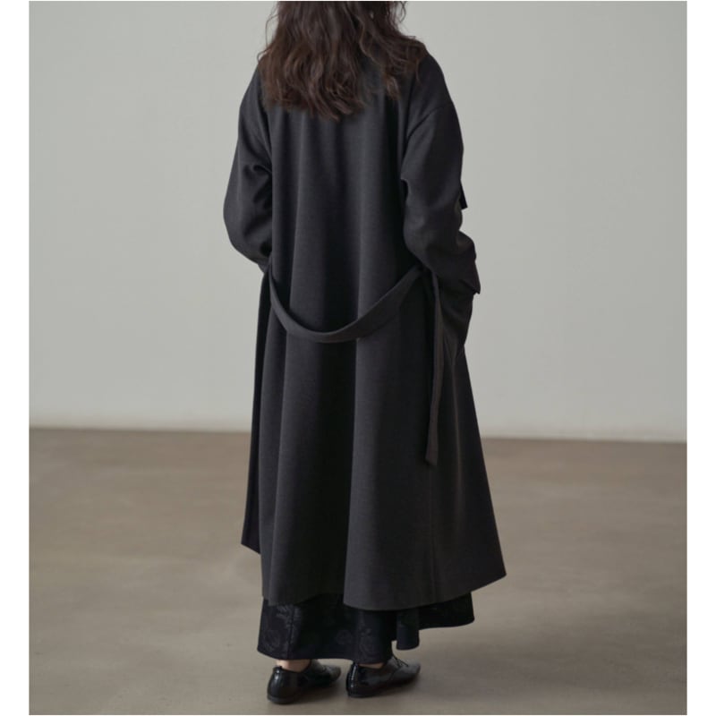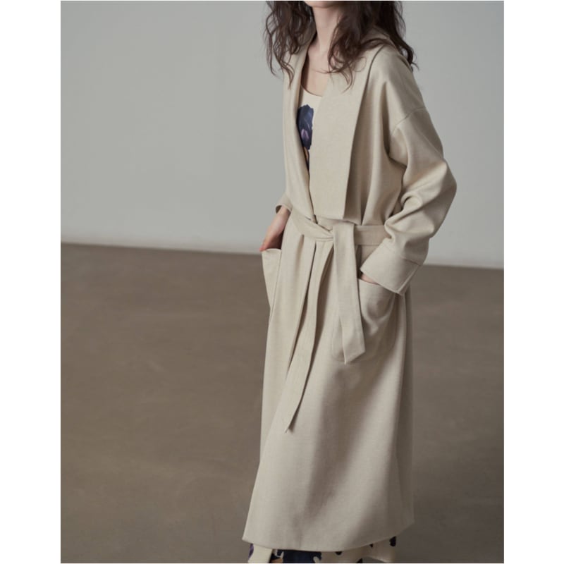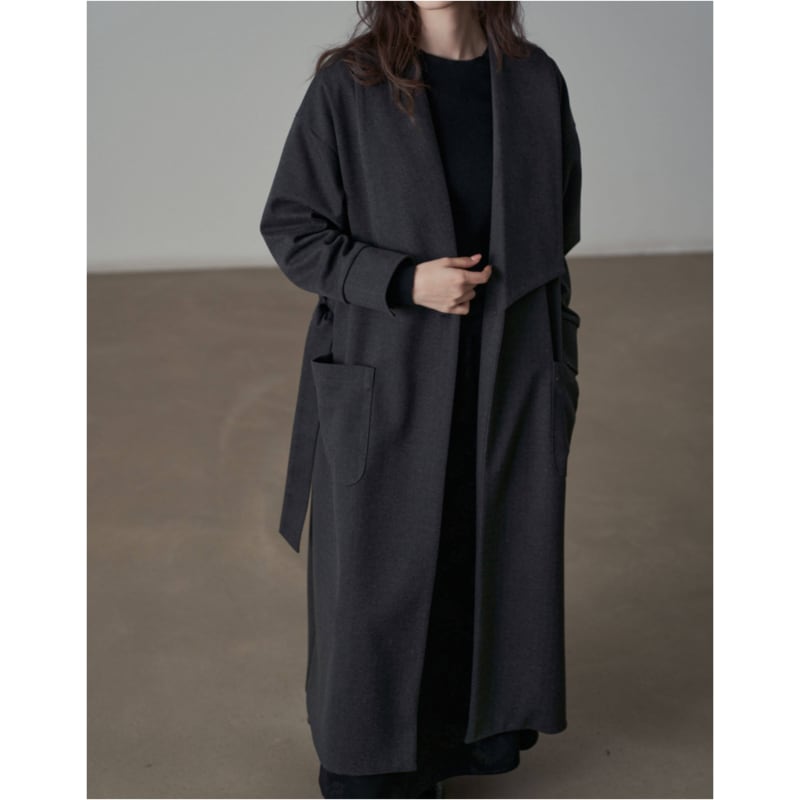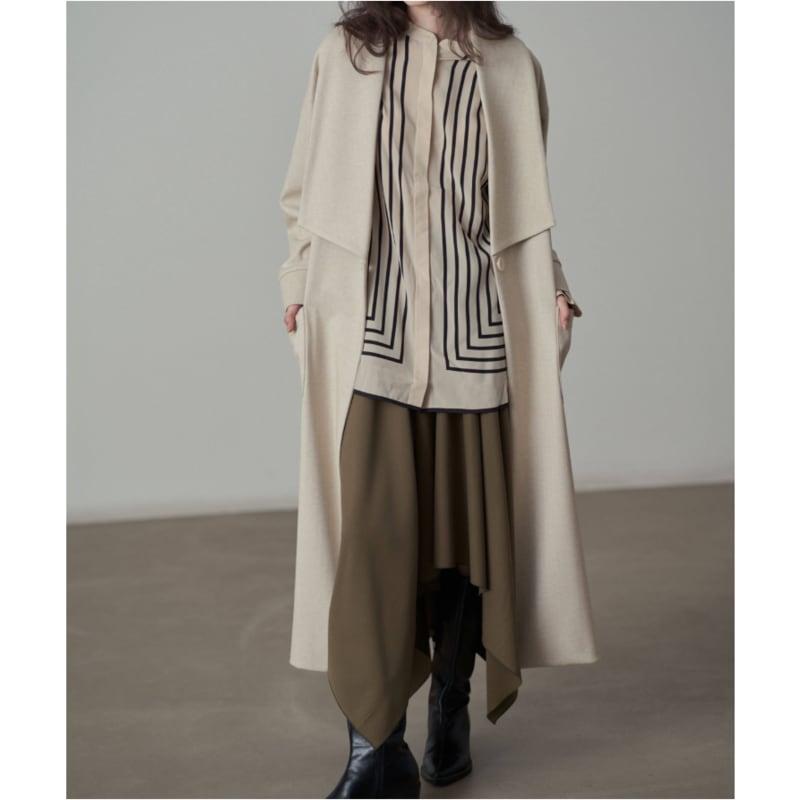 深めの合わせがポイントのトレンチ風デザインが爽やかなロングコートです。