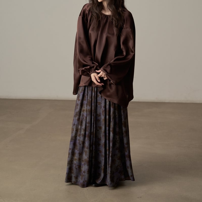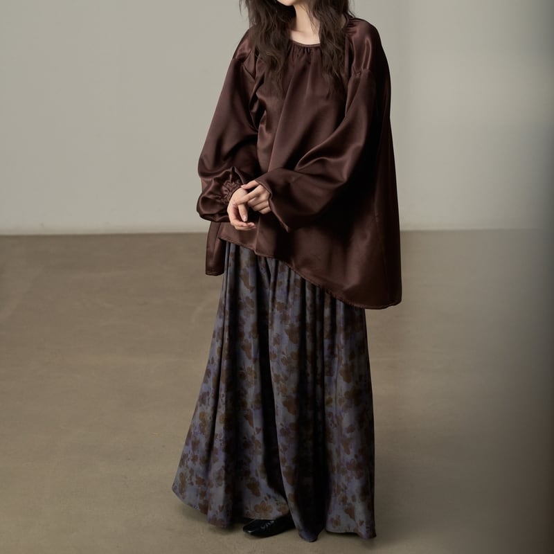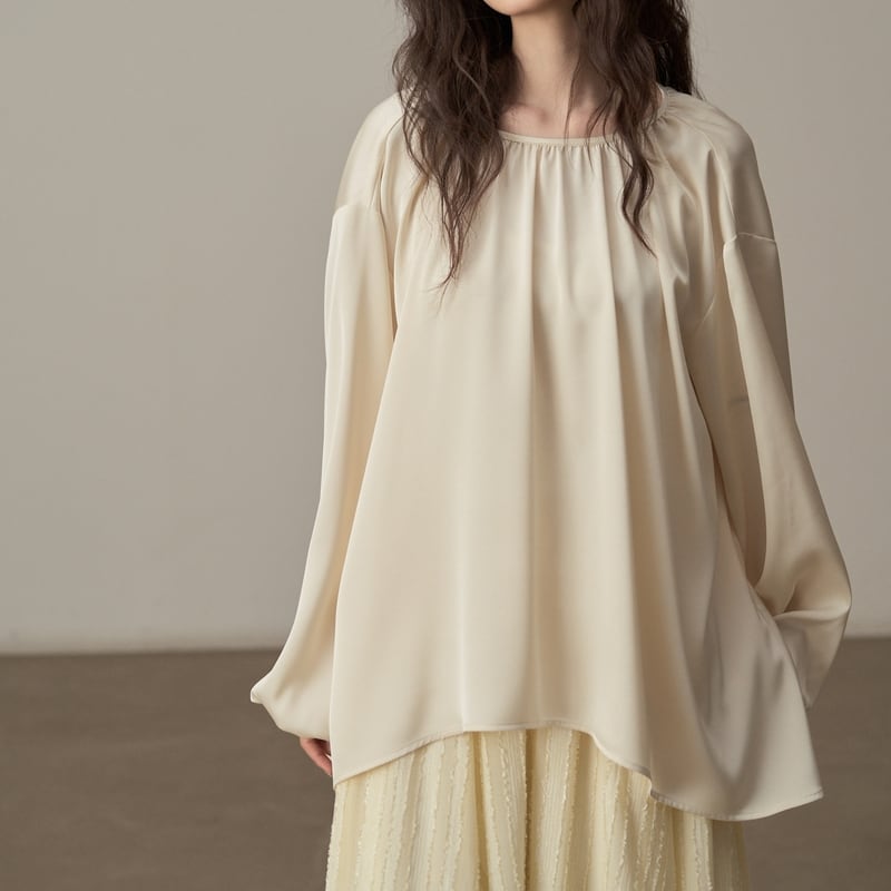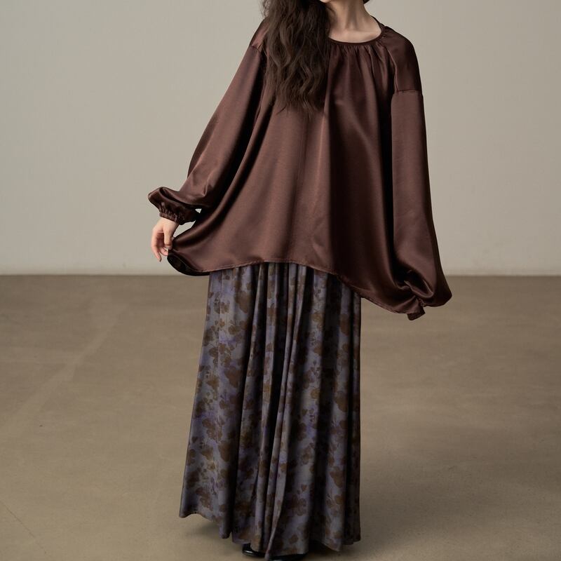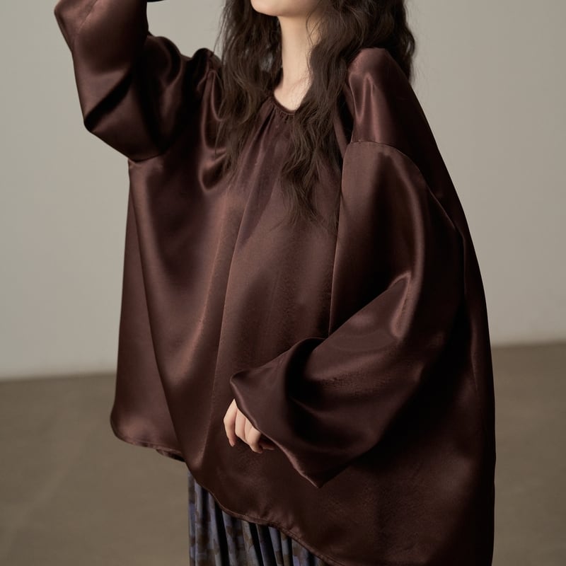ゆったりとしたシルエットでリラックス感漂うツヤ感のあるブラウスです。