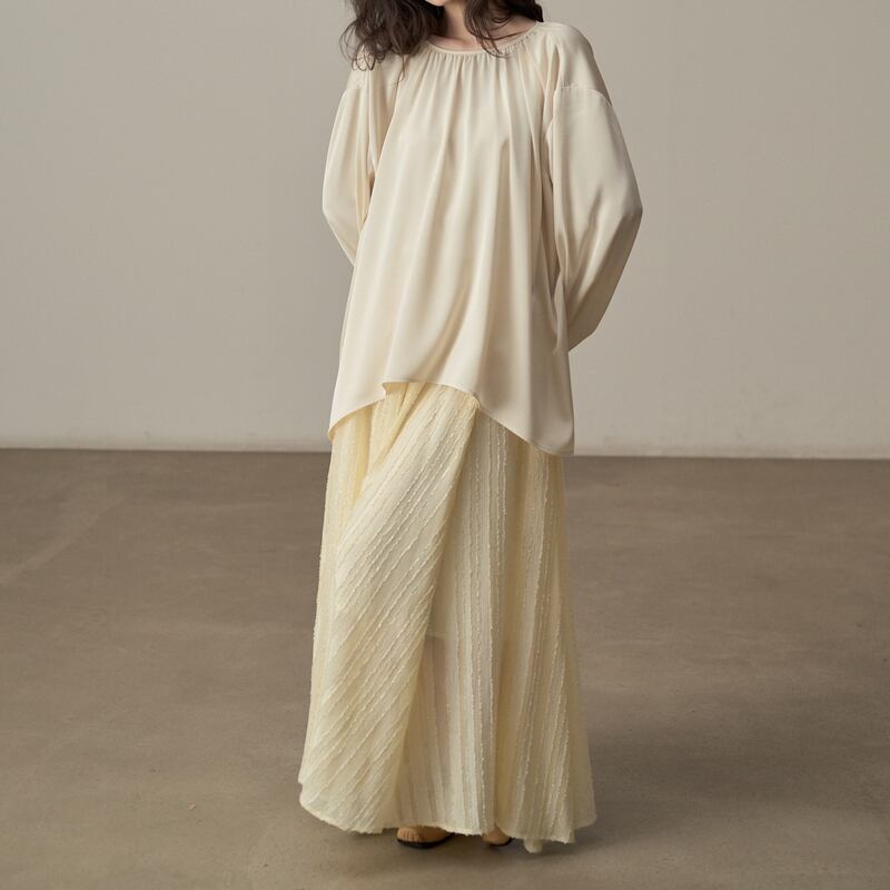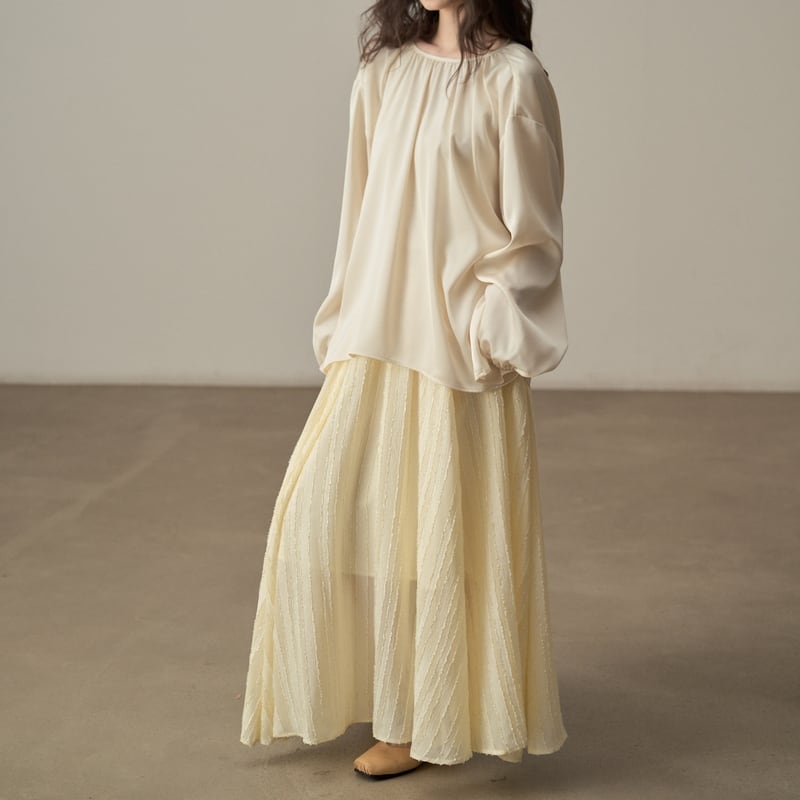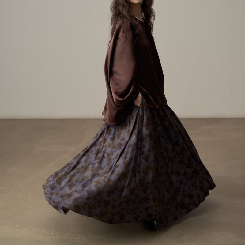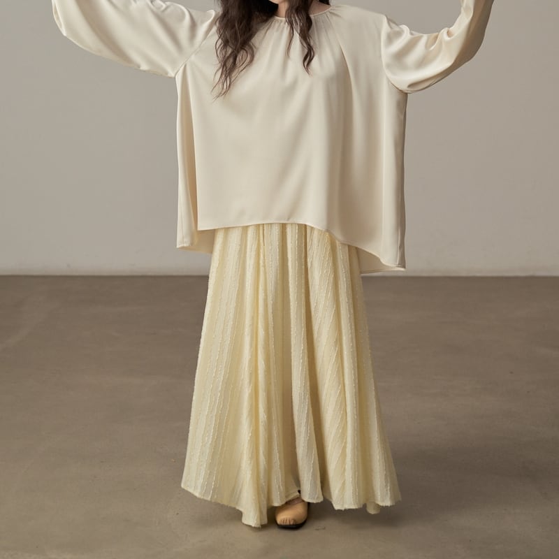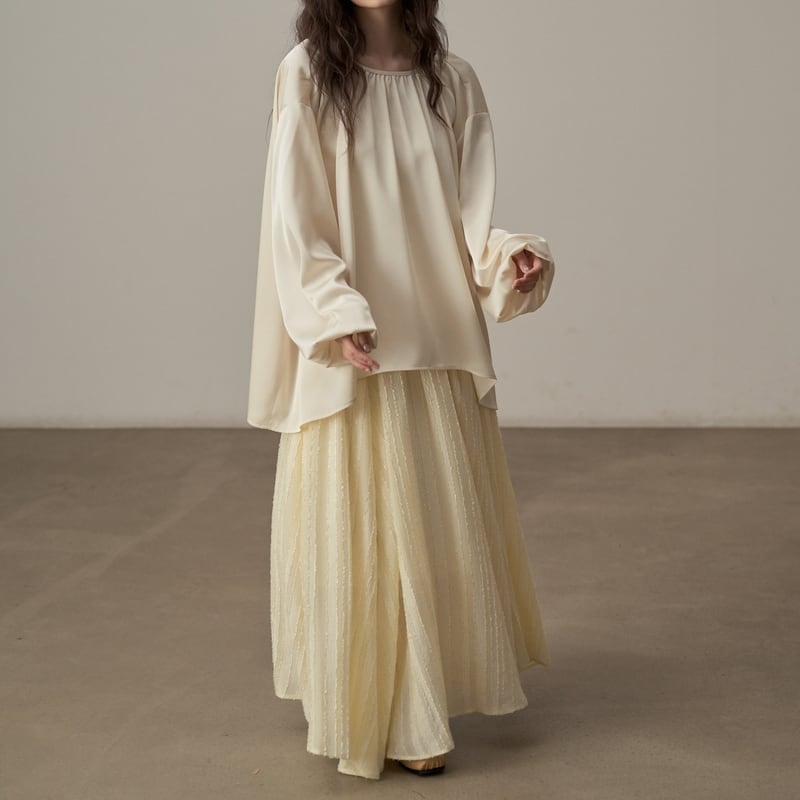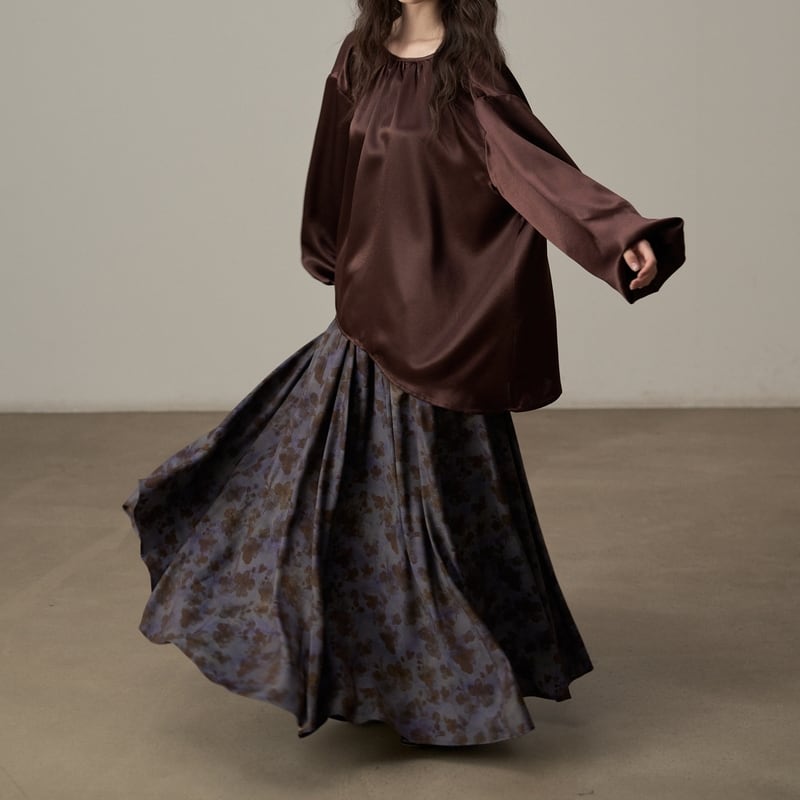 ゆったりとしたシルエットでリラックス感漂うツヤ感のあるブラウスです。