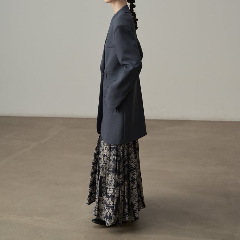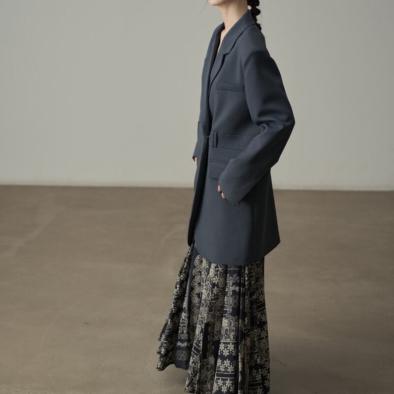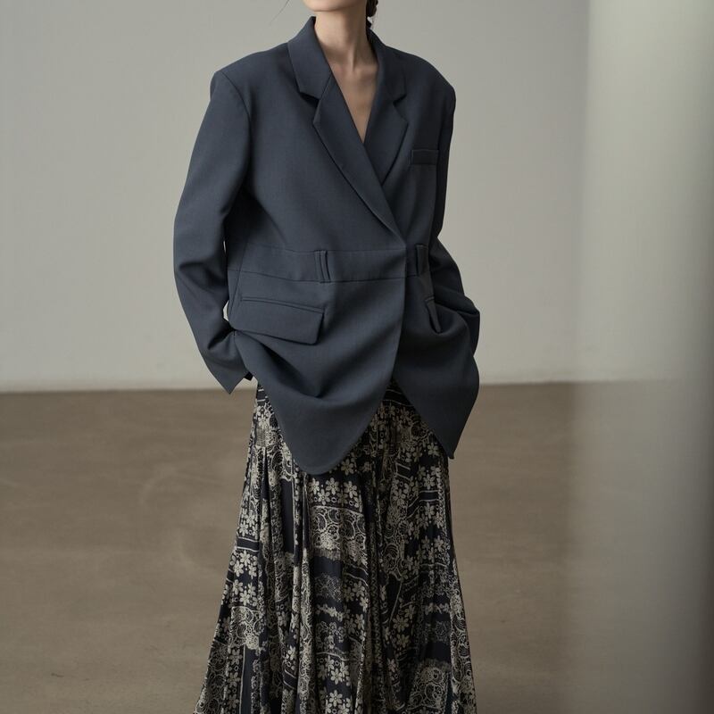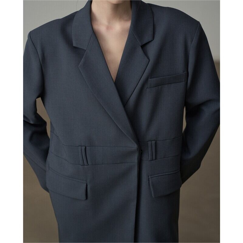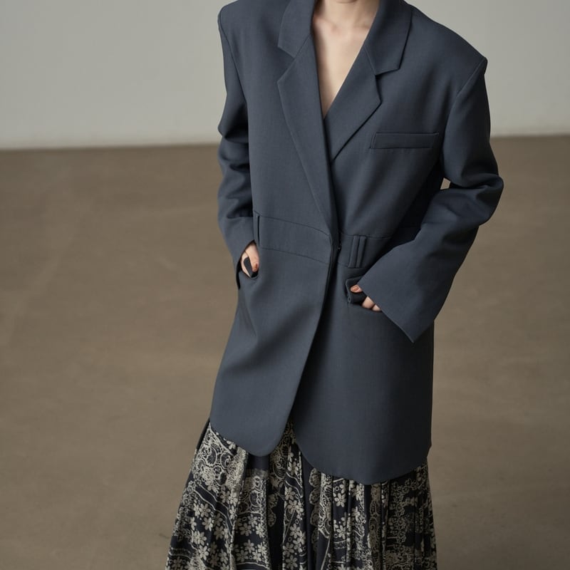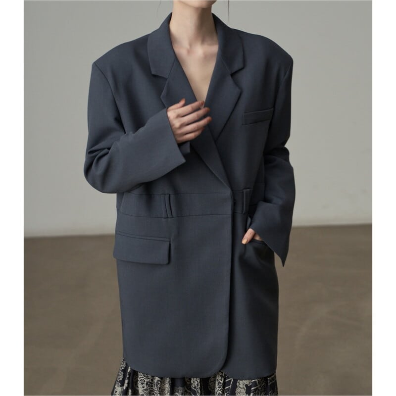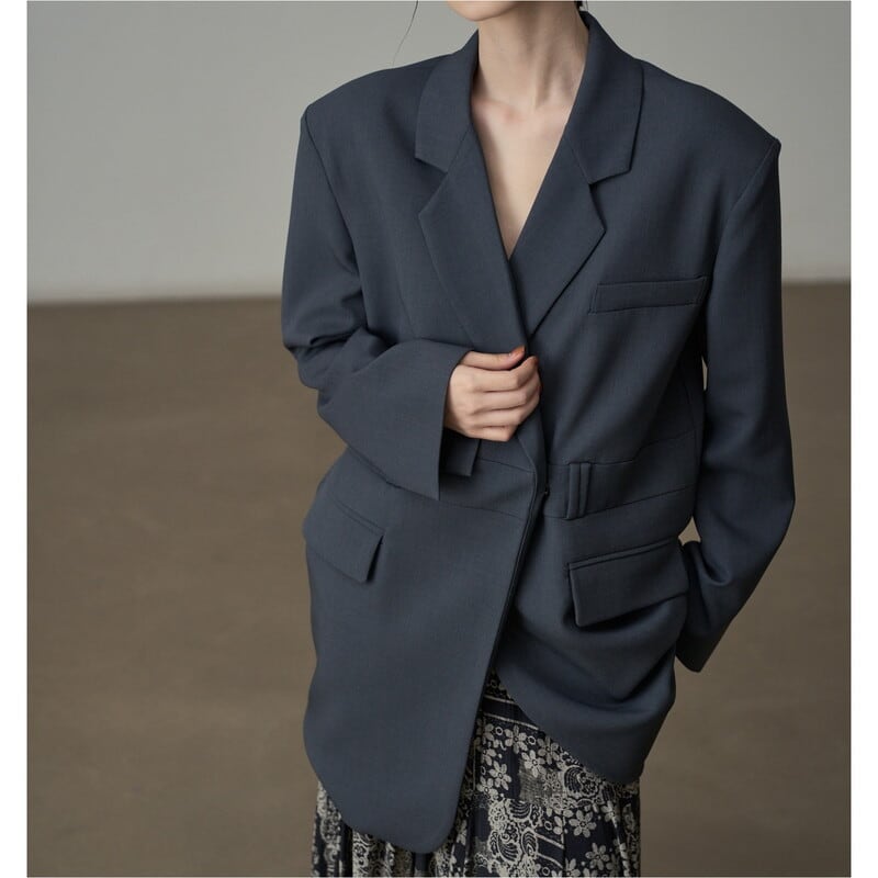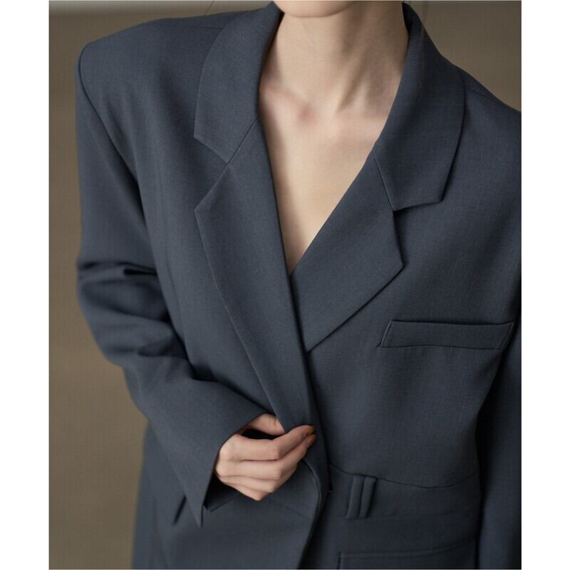 深めのVネックが顔周りをすっきりと見せてくれるテーラードジャケットです。