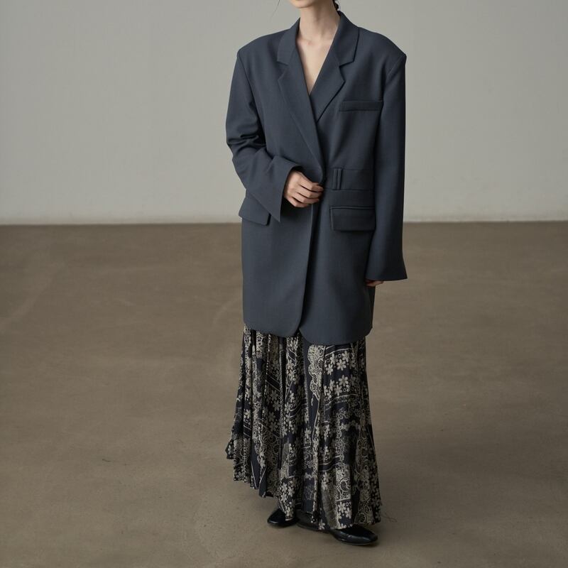 ドロップショルダーとヒップ丈のルーズなシルエットが、こなれ感を演出。