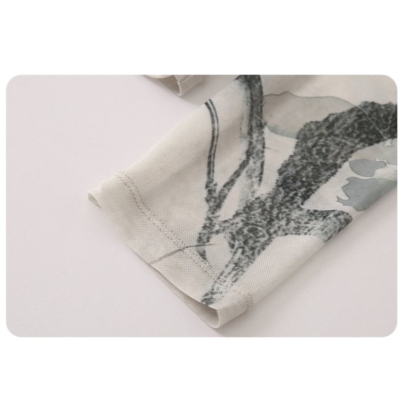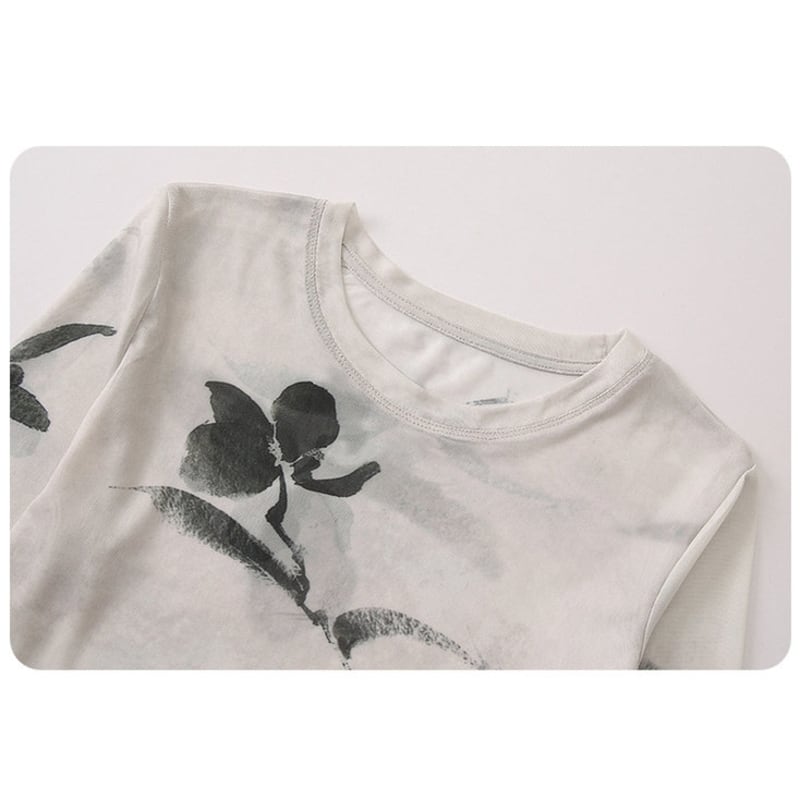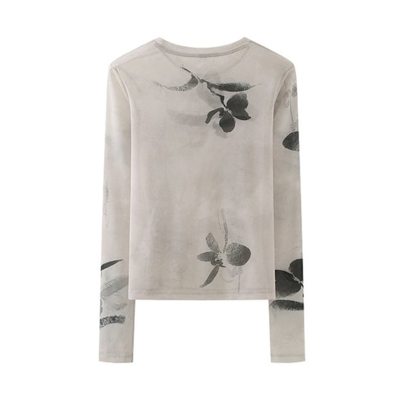 シックなフラワープリントが目を惹く、スリムなシルエットのシアートップスです。