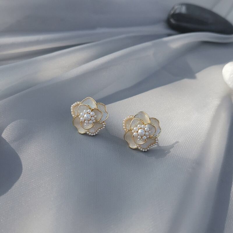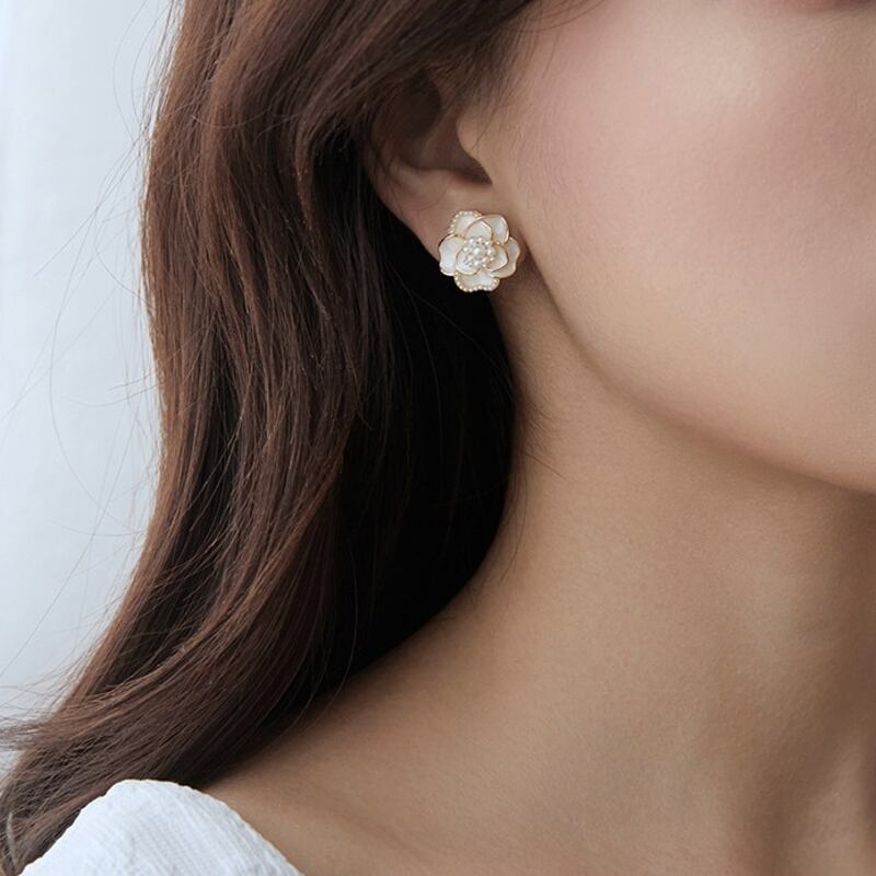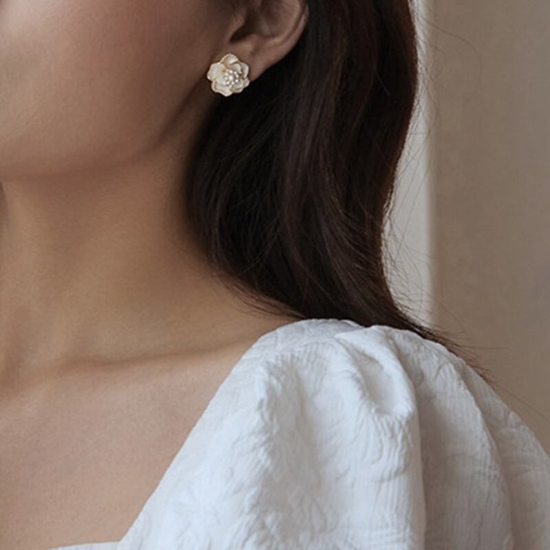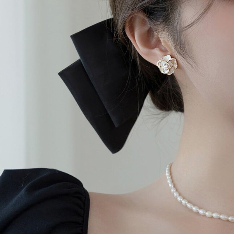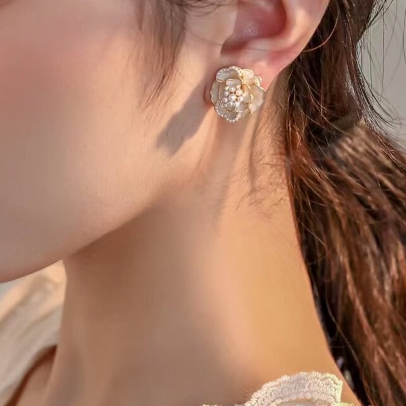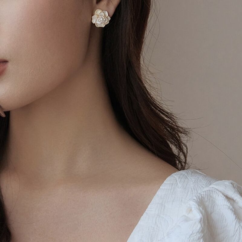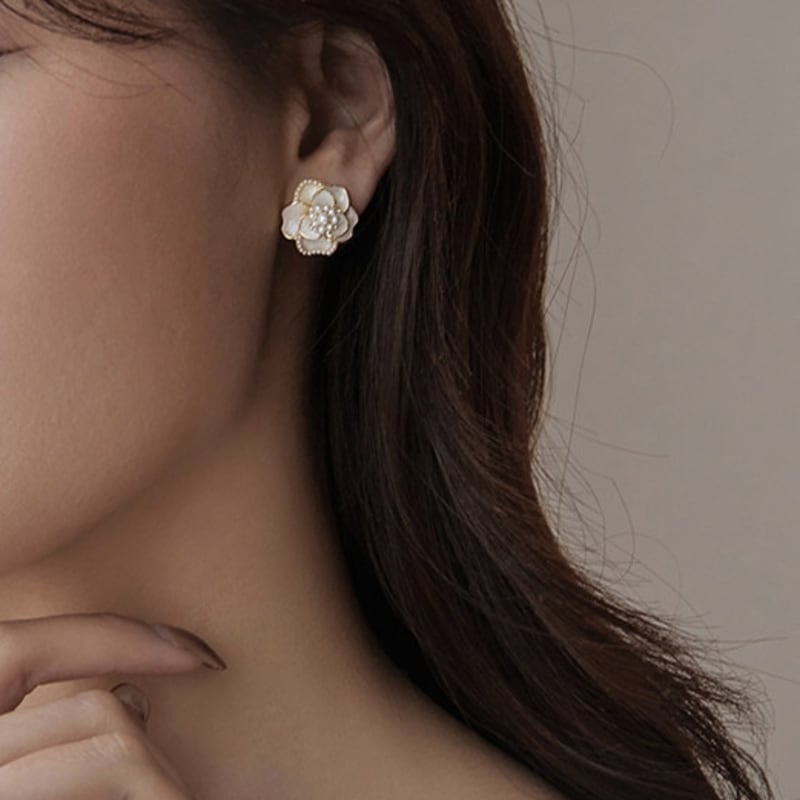 耳元に華やかさを添えるカメリアモチーフのスタッドピアスです。