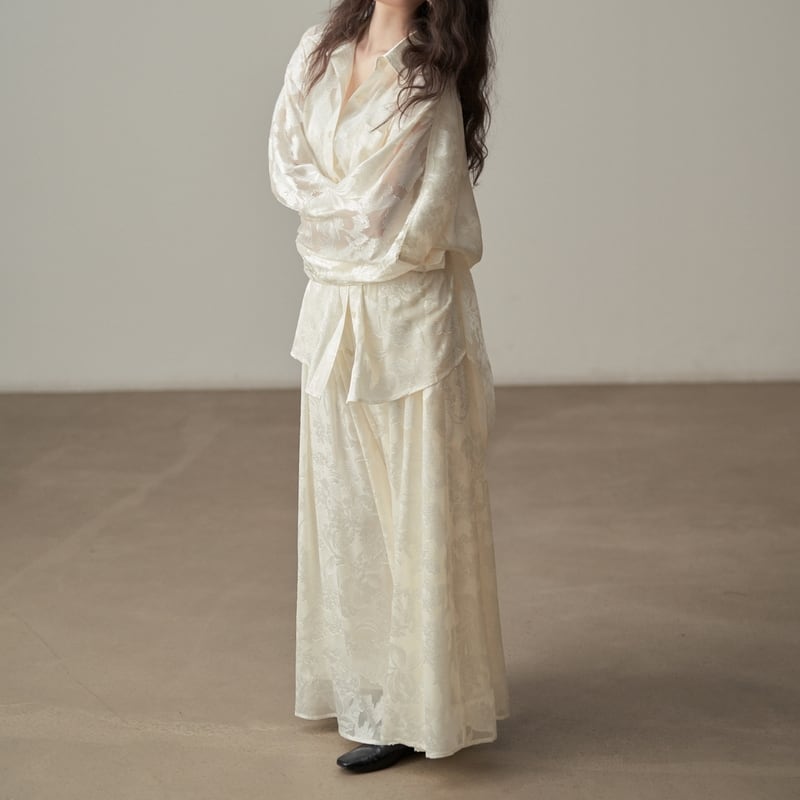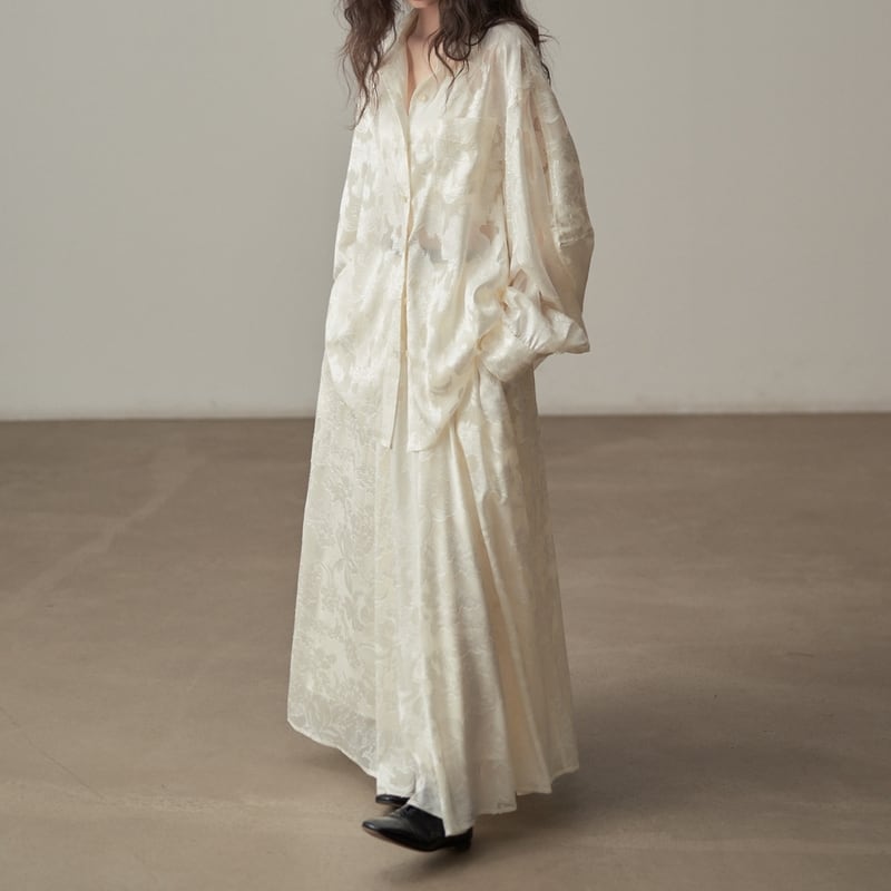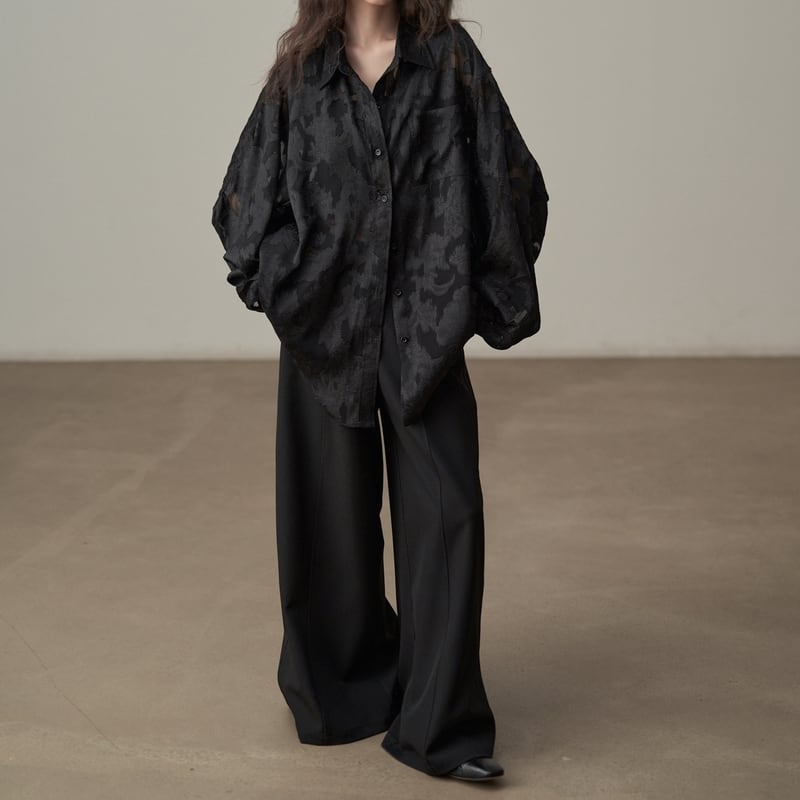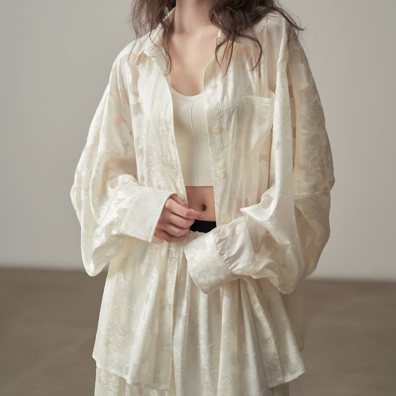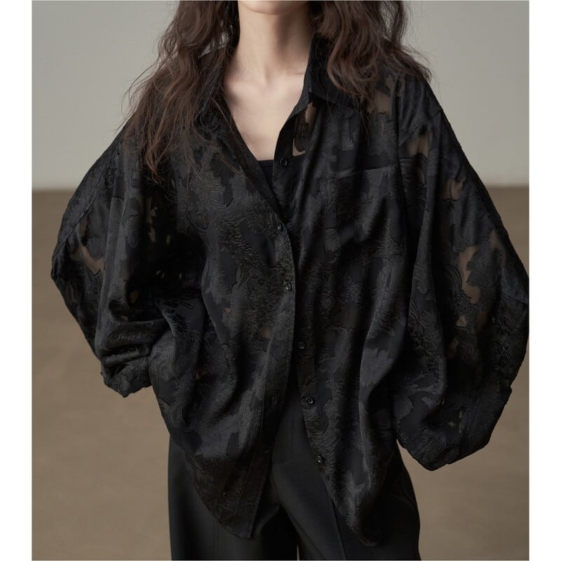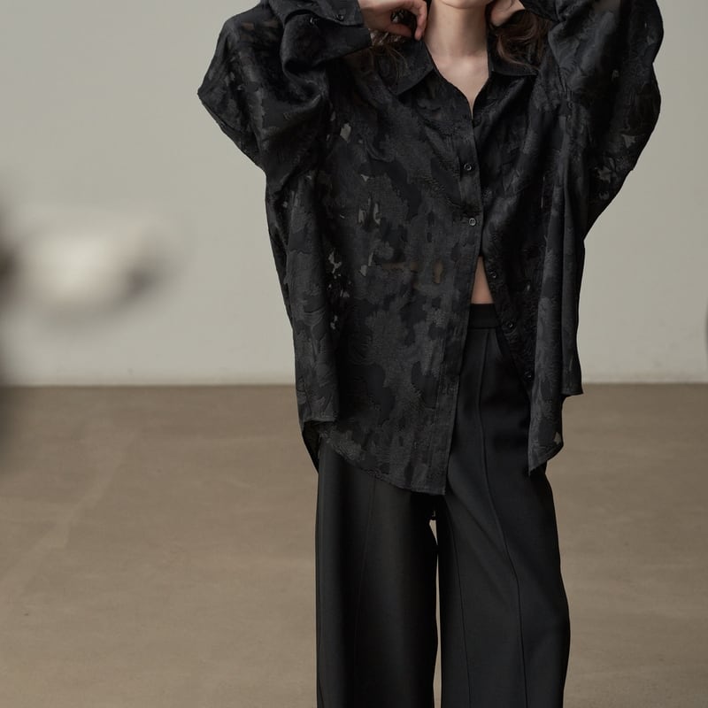 ルーズなシルエットで抜け感を演出する花柄パターンの透け感が上品なシャツです。