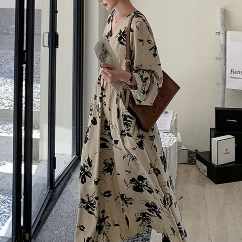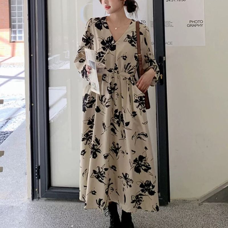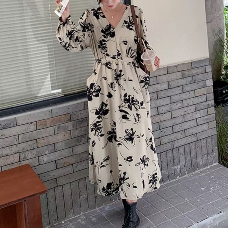 上品な花柄がエレガントな雰囲気を醸し出すマキシ丈ワンピースです。ウエストギャザーでスタイル良く見せてくれる効果も。落ち着いた色合いで、幅広い年代の方におすすめです。アクセサリーや小物で個性をプラスして、自分らしい着こなしを楽しめます。