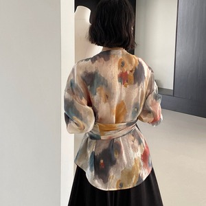 顔周りをすっきりと見せる深めのVネックがポイントのラップデザインシャツです。